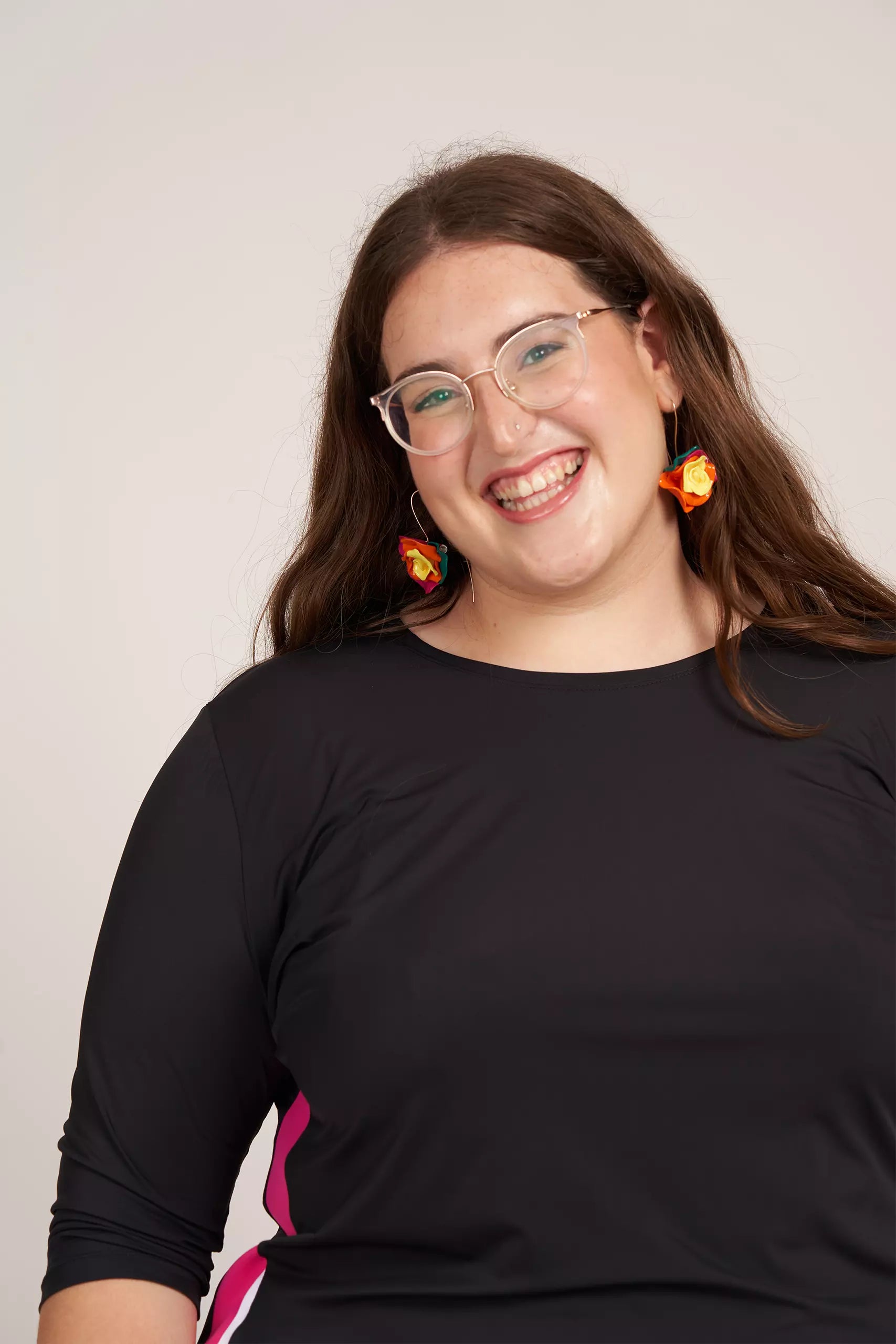 שחור ודובדבן חולצת התעמלות עם 3/4 שרוולים.