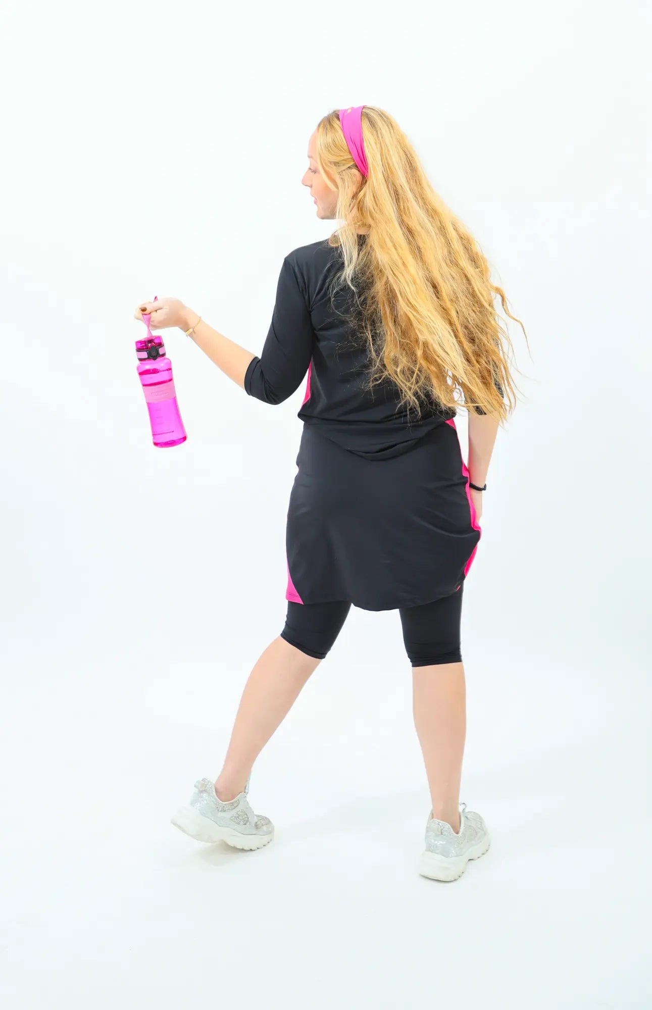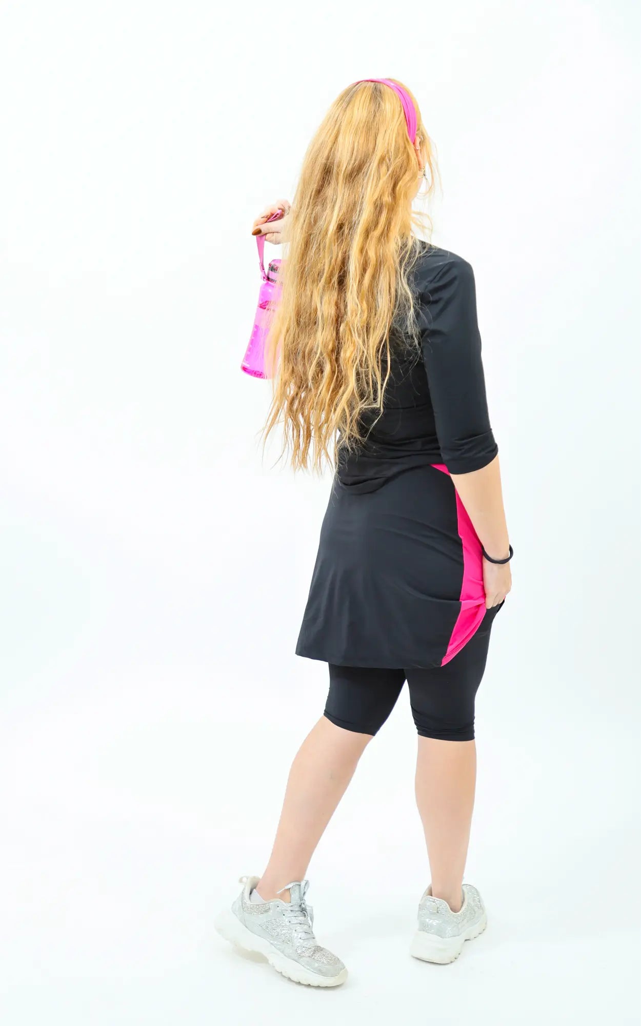 שחור ודובדבן חולצת התעמלות עם 3/4 שרוולים.