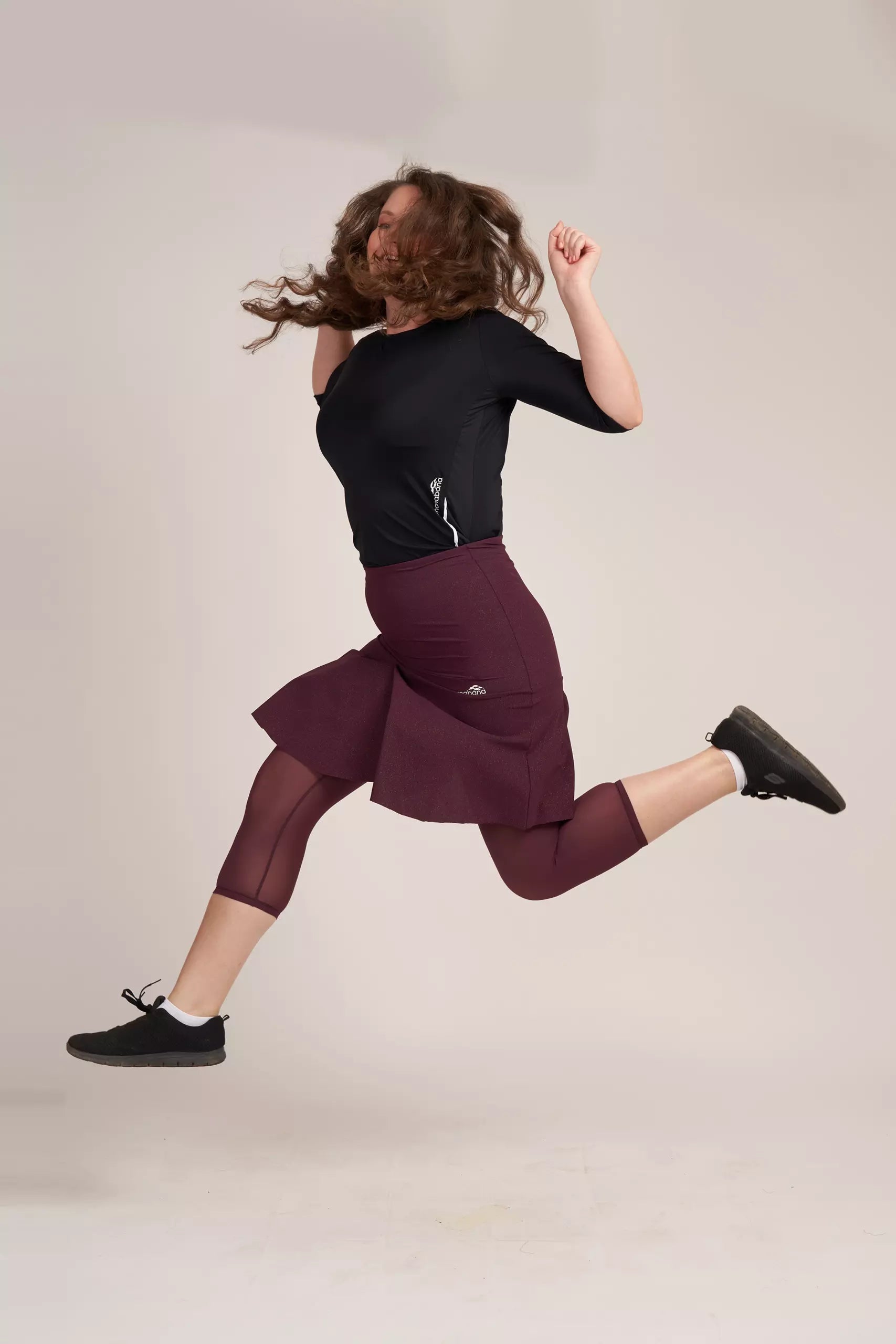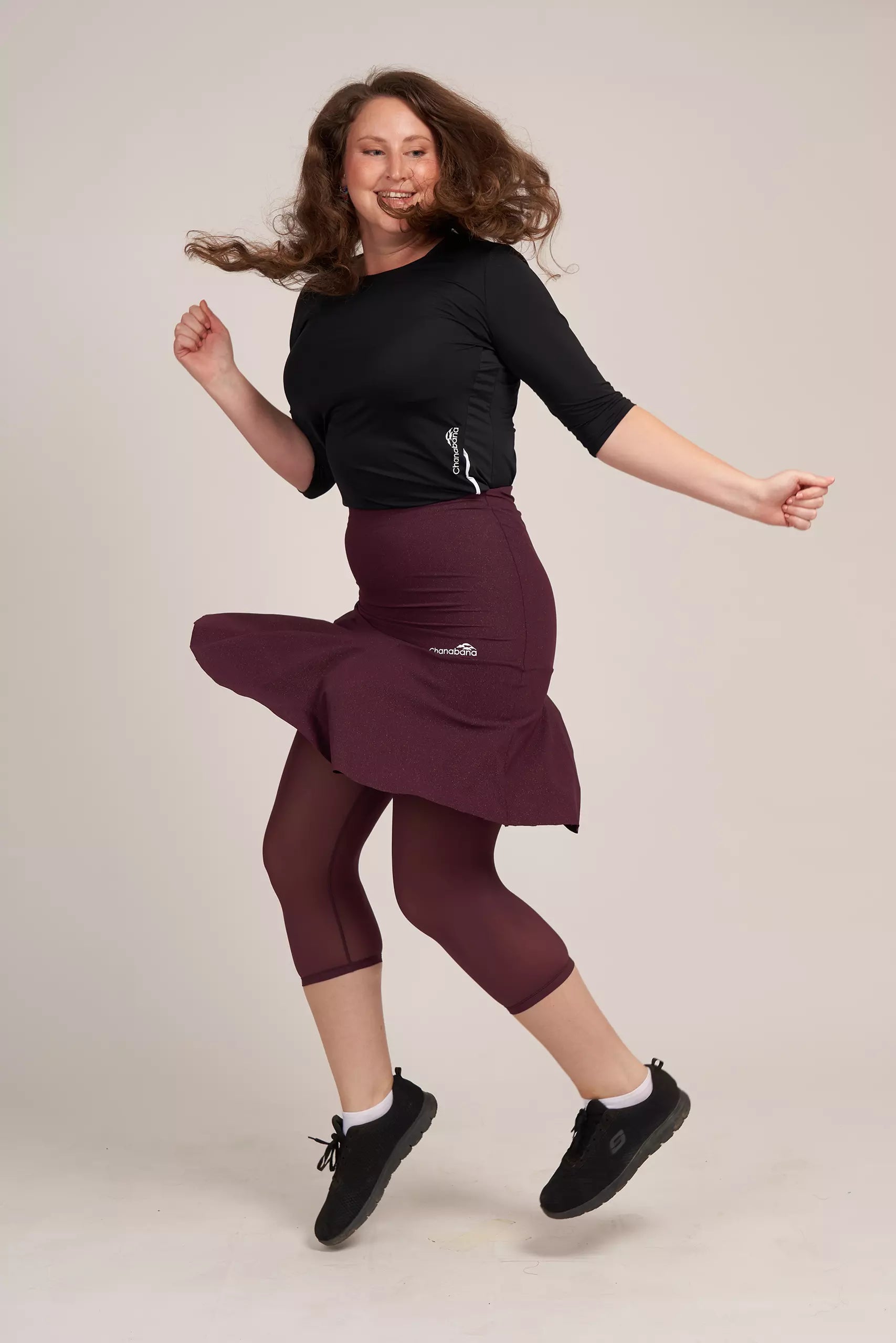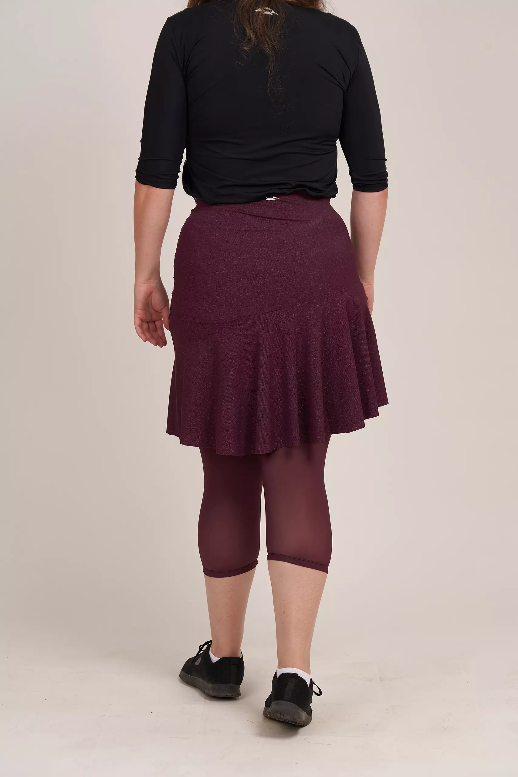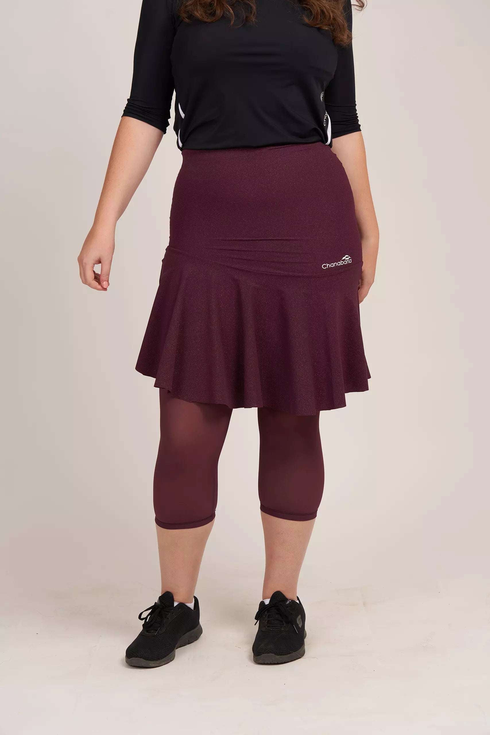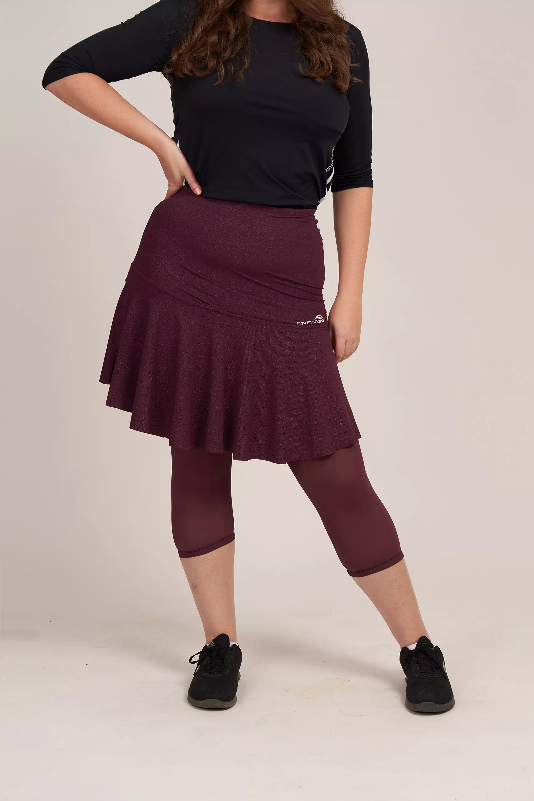 |  חצאית טניס אסימטרית Sparkle Maroon ו-3/4 חותלות מובנות. אורך החצאית: צד קצר- 48 ס"מ, צד ארוך -57 ס"מ מולי היא 5'9 ולובשת מידה S. מומלץ- להתאים לחלק העליון של שחור ולבן.