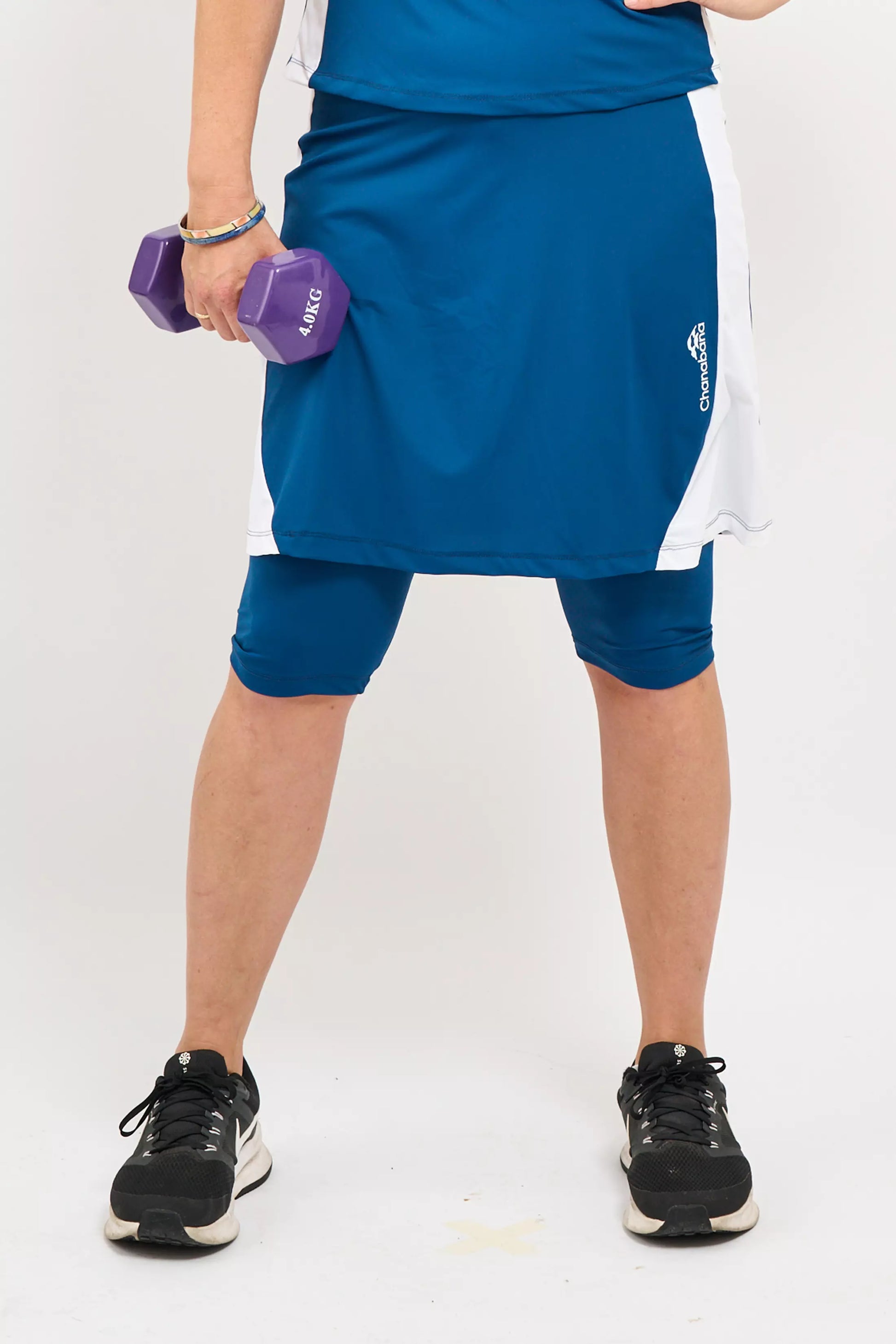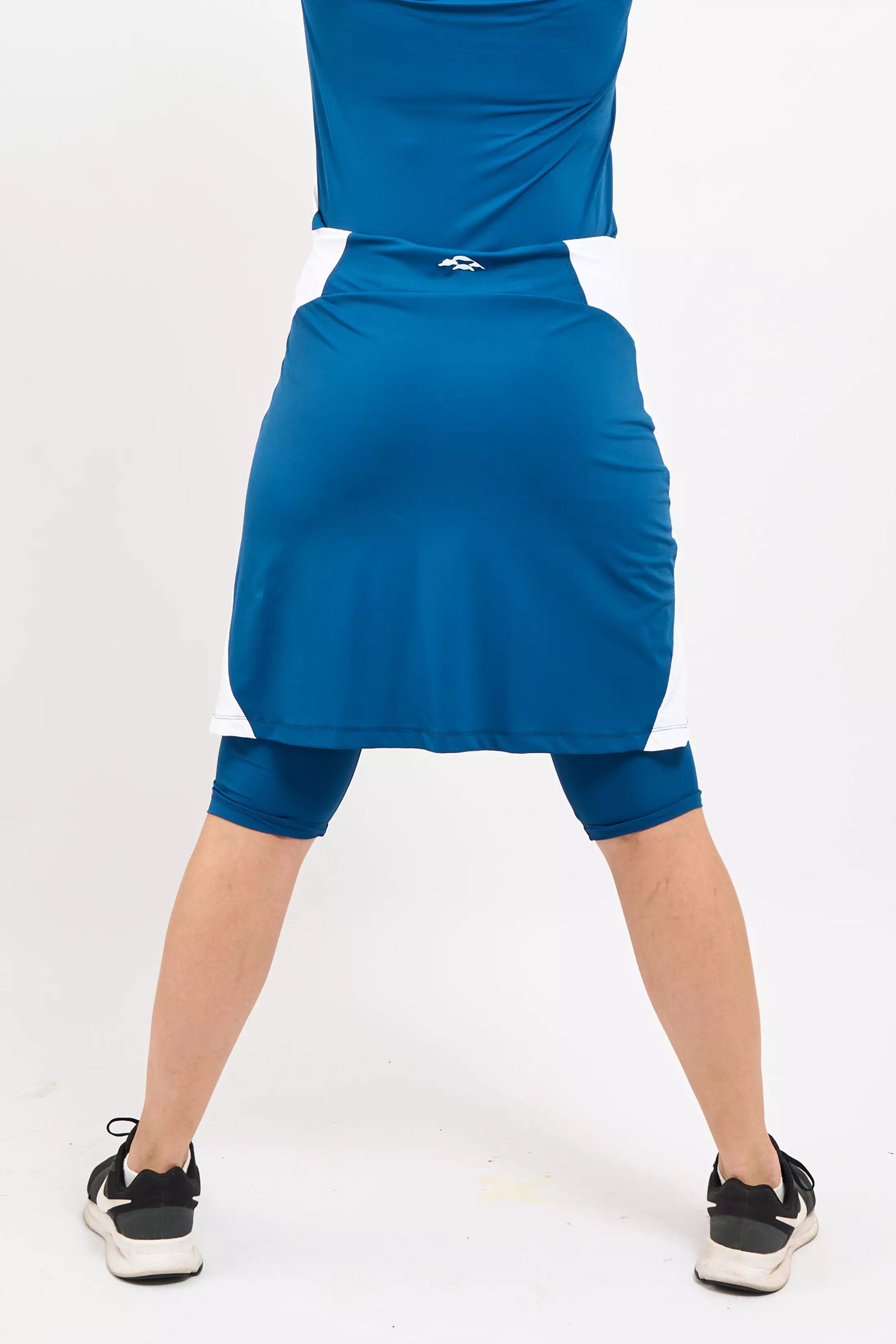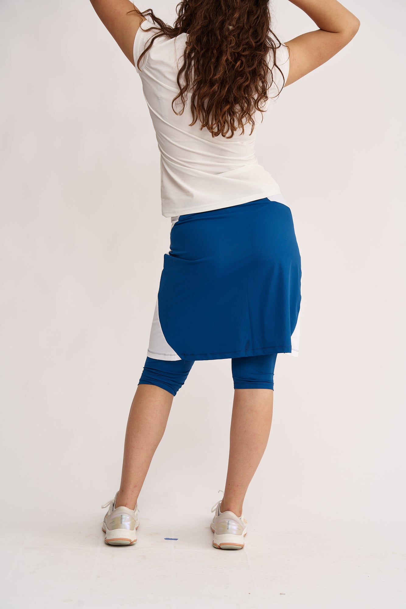 Deep Teal with White exercise skirt. Above the knee skirt with capri leggings