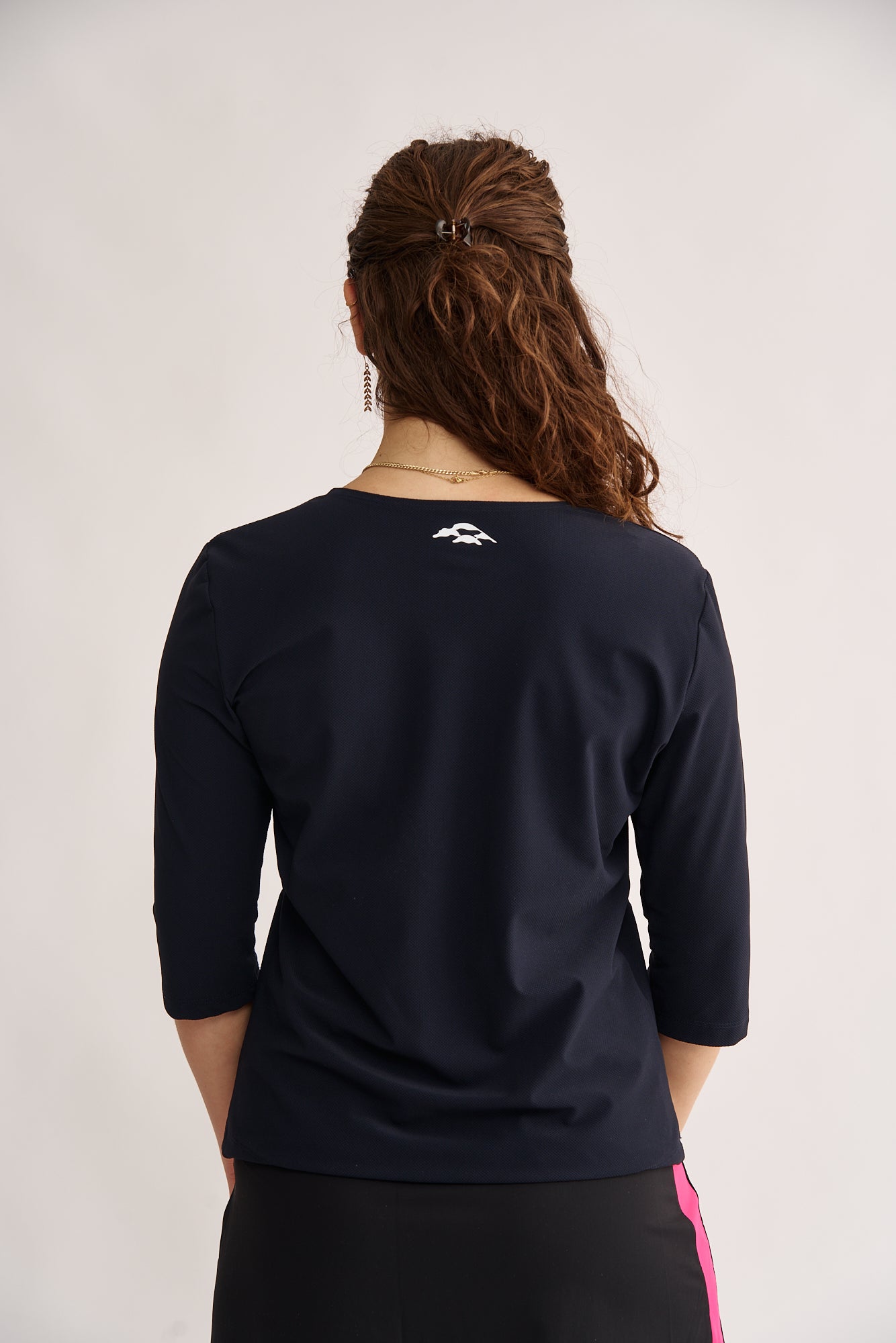 Black and White Dry Fit exercise shirt with 3/4 sleeves.