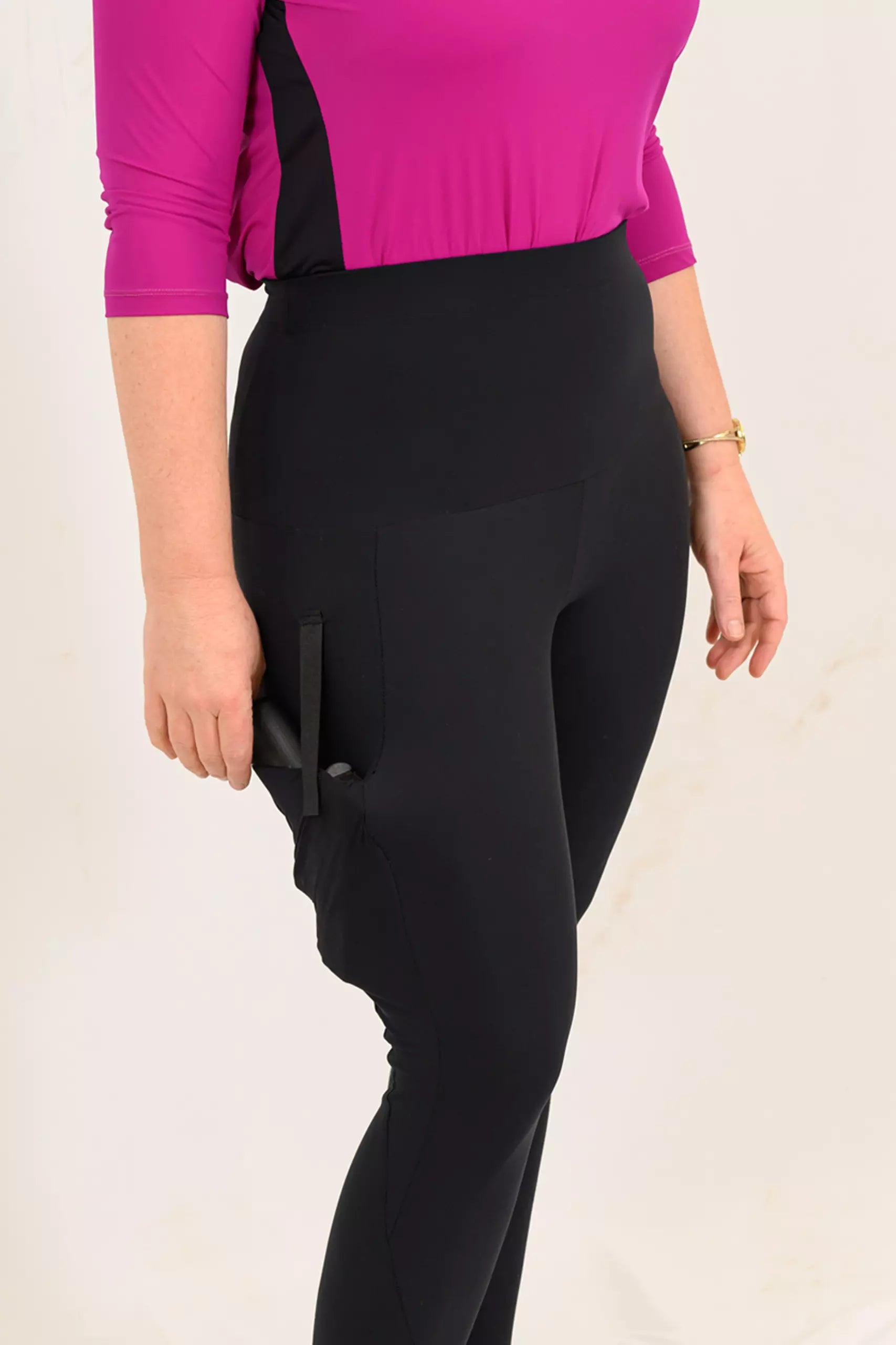 Black Holster-Ready exercise leggings. Available long (96cm), capri (65cm) and shorts (50cm) length.
